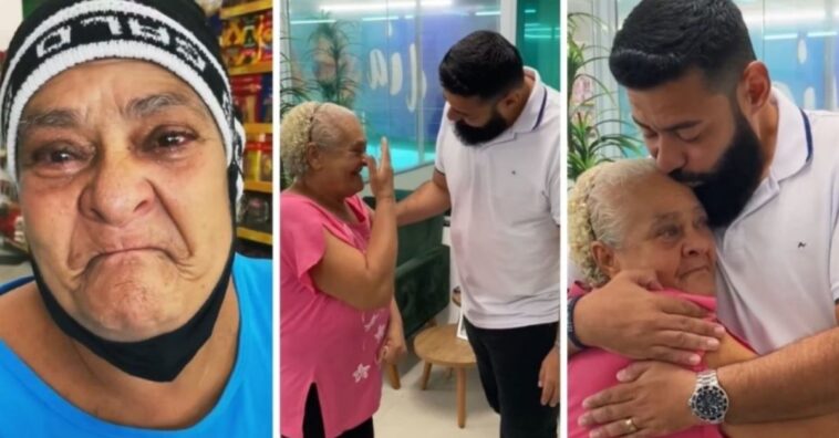 Cheia de alegria, ela disse: “enchi dois carrinhos!”. E para emocionar ainda mais o gestor, dona Luiza completou: “você sabia que o que você me deu ali de compra, tinha mais de 20 anos que eu não comia?”