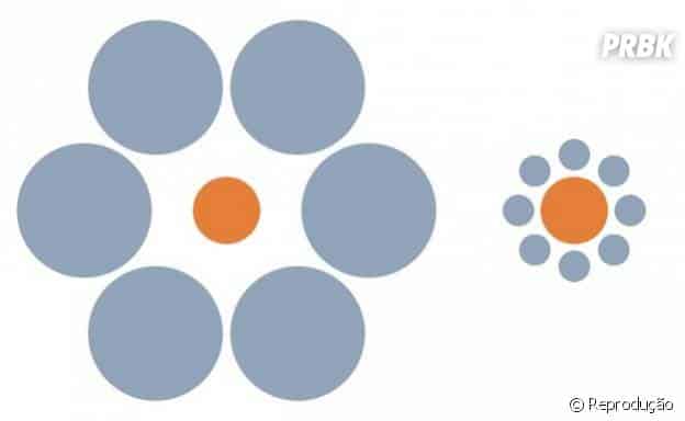 Acredita que os dois círculos laranja tem o mesmo tamanho? Pode medir!