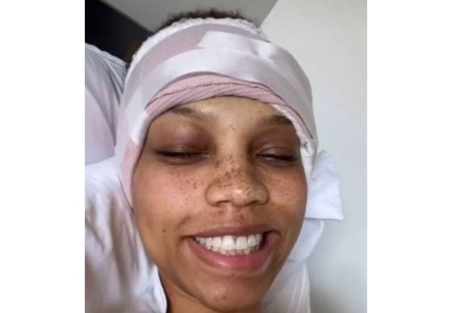 Ela ainda está em processo de recuperação e está mostrando aos seus seguidores, sem esconder os hematomas no rosto e a marca que ainda tem na região operada.
