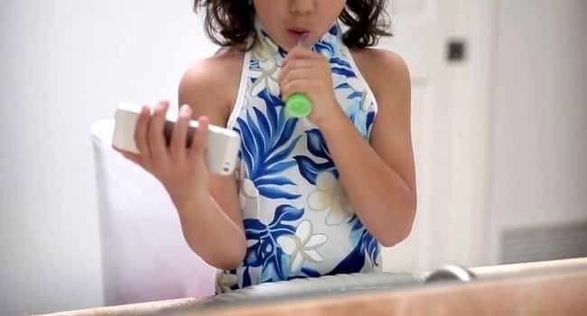 Para incentivar a escovação de dentes, que costuma ser um martírio, essa escova é conectada no smartphone e mostra em 3D na tela os movimentos que a criança faz. Para ser ainda mais legal, a cada movimento certo a criança ganha pontos e até prêmios.