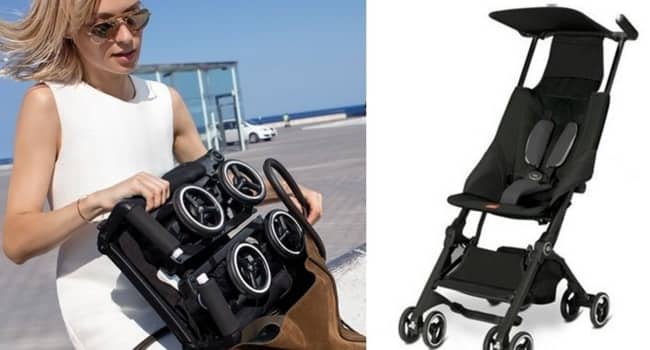 Se você estiver na rua passeando com o bebê e quiser entrar em um estabelecimento onde a passagem do carrinho é difícil, essa invenção facilita as coisas: um carrinho dobrável que cabe em uma bolsa.