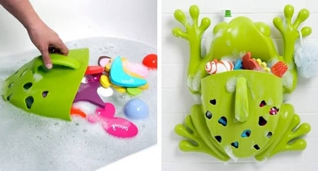 Com esse acessório fica muito mais fácil retirar todos os brinquedos da banheira e não se preocupar em como secá-los. Basta pendurar dentro do box e deixá-los lá até o próximo banho.