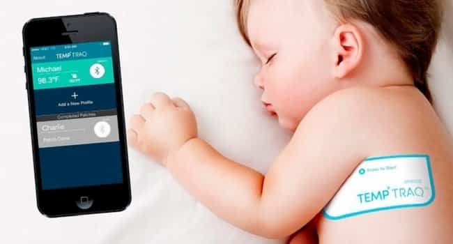 Nem sempre é fácil medir a temperatura das crianças. Seja porque elas não querem ficar paradas ou para não acordá-las durante o sono, especialmente quando estão doentes. Pensando nisso, foi criado um termômetro adesivo que é colocado na criança e mostra a temperatura continuamente. Se esta aumentar, o dispositivo envia um aviso para o smartphone dos pais, permitindo que acompanhem qualquer alteração.