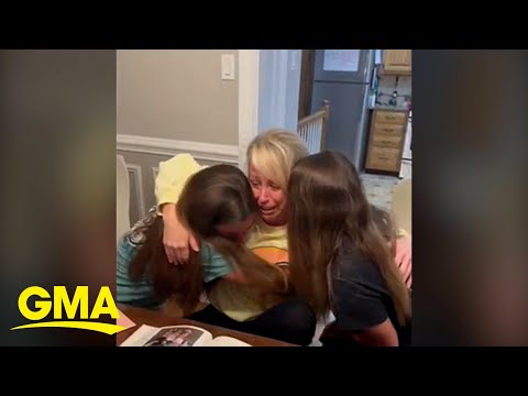 As irmãs gêmeas Gabriella e Julianna Ruvolo, de 20 anos, fizeram uma grande surpresa para sua madrasta Becky Ruvolo, de 37 anos, no último dia das mães.