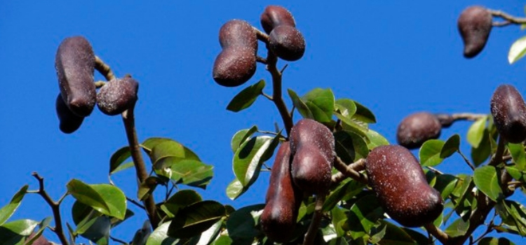 Na grande árvore do jatobá existem diversas vagens marrom-escuro penduradas. Em seu interior há uma massa que recobre suas sementes. Essa massa possui alto valor nutricional, é adocicada e comestível, como um fruto.