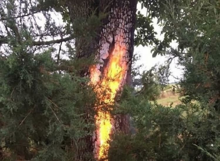 Que as árvores atraem raios por conta da sua altura todos sabem, mas o resultado nem sempre é visto, como neste caso em que a madeira pegou fogo e derreteu.