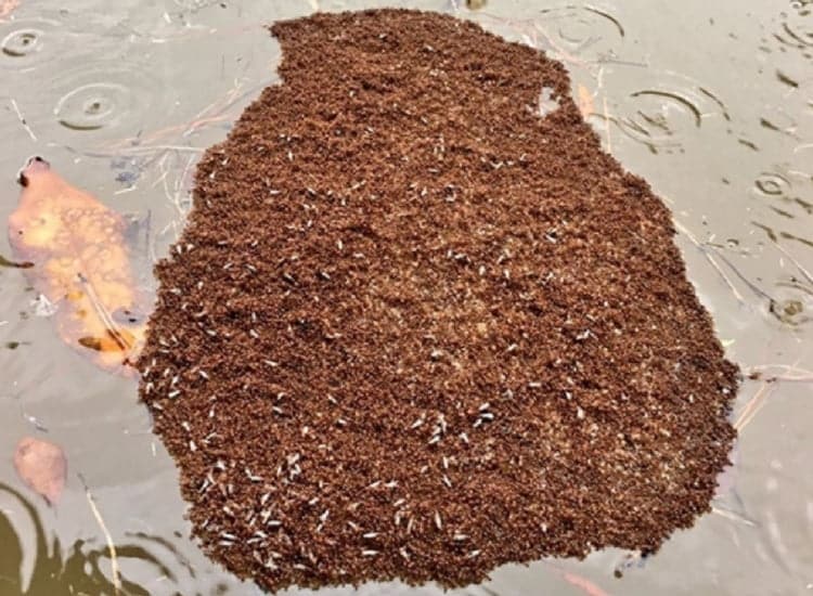 Estas formigas vermelhas formaram uma ilha flutuante pela qual podem se locomover na água sem se afogarem. Muito perspicaz!