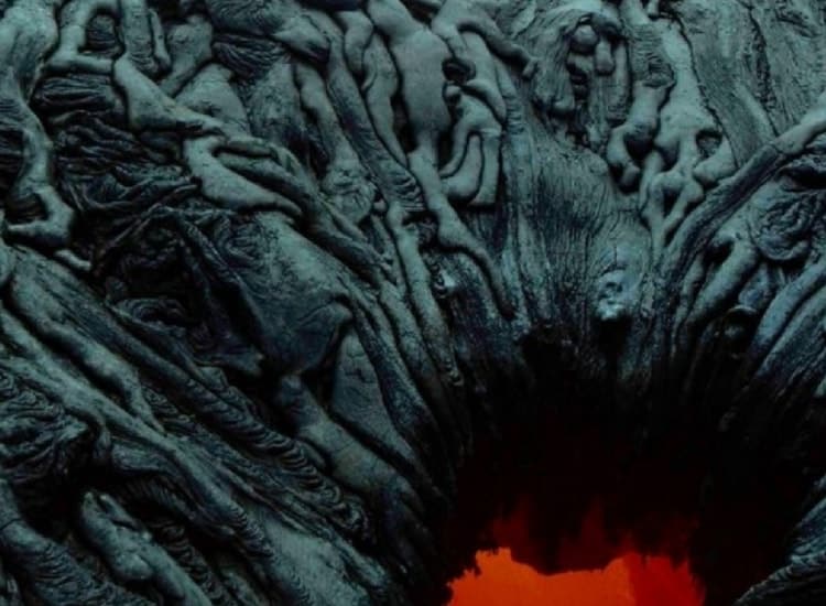 À primeira vista, essa imagem parece ser de vários corpos humanos caindo na caverna cheia de lava. Mas este é apenas o formato da lava resfriada voltando para o lugar de onde veio.