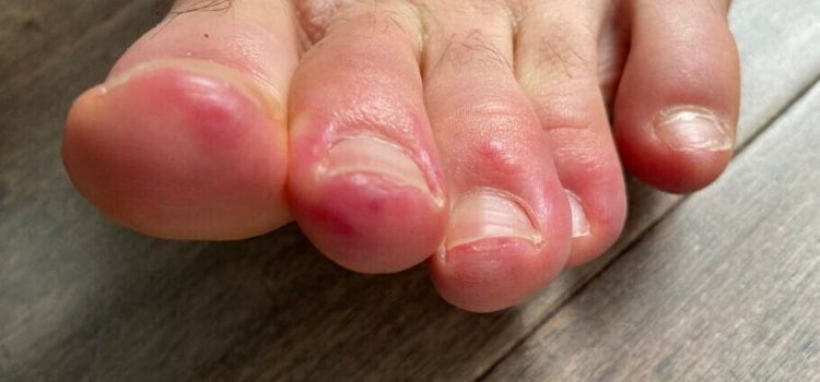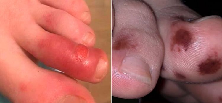 Muitos pacientes, em especial crianças e jovens de até 20 anos, têm apresentado lesões nos dedos dos pés dias antes de terem os sintomas comuns.