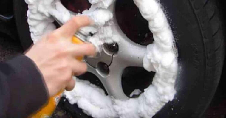 - De seguida, espalhe essa espuma por toda a jante, uniformemente (o processo se parece um pouco com a espuma que se utiliza para barbear). Não deixe nenhuma área da jante por cobrir.