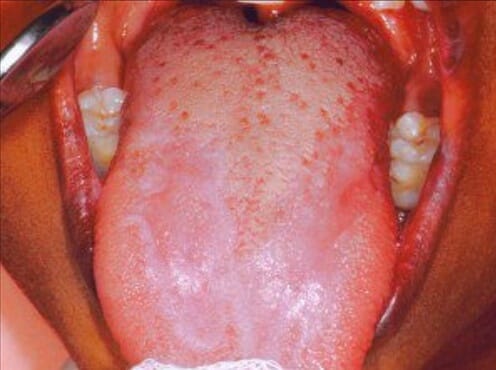 São lesões na boca que deixam a língua com aspecto avermelhado e/ou esbranquiçado, além sensação de ardência ou queimação em toda a boca. É considerada um tipo de doença bucal dos mais comuns. Outra característica é que pode também não apresentar sintomas. O tratamento é paliativo e a doença cura-se sozinha, devendo o paciente tomar cuidados como evitar álcool e cigarros.
