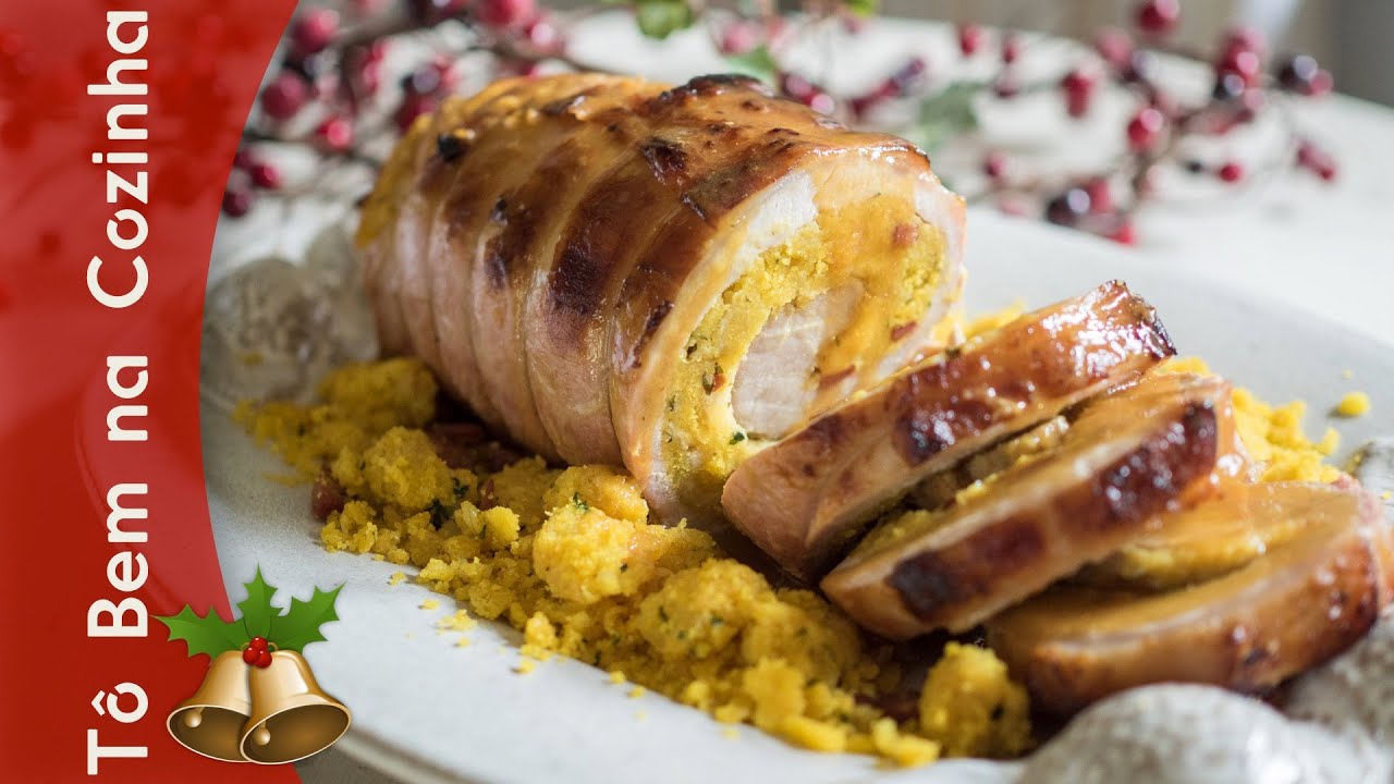 Esse recheio fica muito bom com a carne do lombo, especialmente quando você a prepara de modo que fique bem suculenta. A farofa de banana já serve como um bom acompanhamento e é muito fácil de fazer. Veja a lista de ingredientes e todo o preparo nesse vídeo do canal Tô Bem na Cozinha: