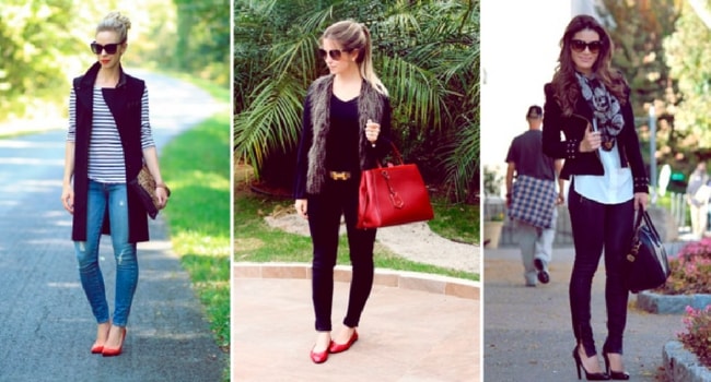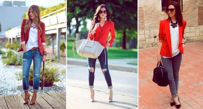 O vermelho traz maturidade ao visual, especialmente o vermelho tom de morango, não muito vibrante nem muito escuro. Como camisa ou blazer, ele dá um charme especial vestido na parte de cima.