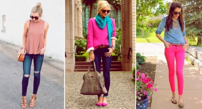 Mas não tenha medo de experimentar looks de cores diferentes. Mude, ouse, aproveite a estação e fique mais colorida. Veja estas sugestões para looks casuais: