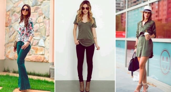 Os vários tons de verde, especialmente o militar, estão em alta. Deixam o look poderoso e é uma cor muito fácil de combinar. Pode ser discreto, ou verde-folha em um blazer, camisa ou vestido.