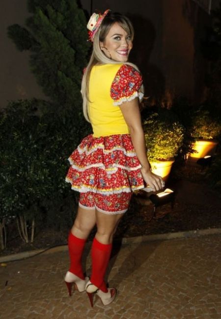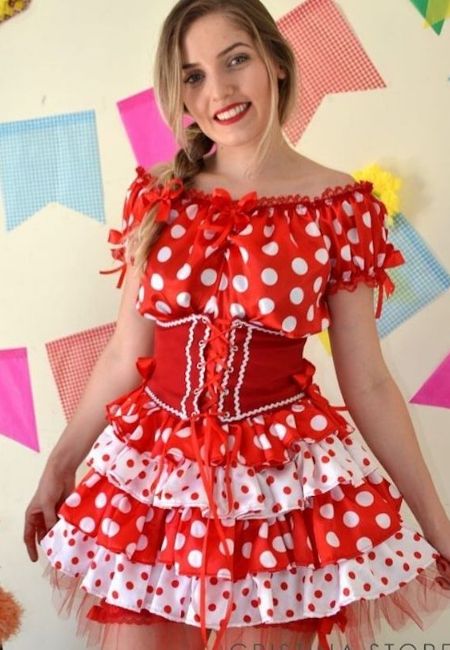 Se você é uma comadre moderna, um cropped com saia cintura alta vai ficar lindo. Escolha suas cores preferidas e faça detalhes com babados.