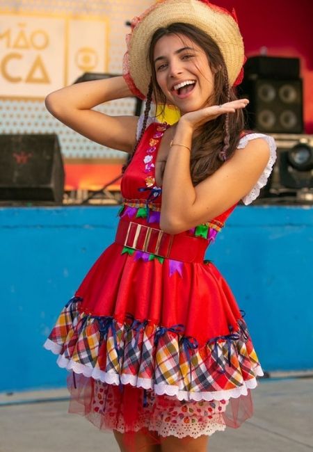 As estampas xadrez são as campeãs na hora de escolher looks para festa junina, mas não precisa se limitar a elas. Pode usar flores, bolinhas, estrelinhas e tecidos lisos com muitos acessórios.