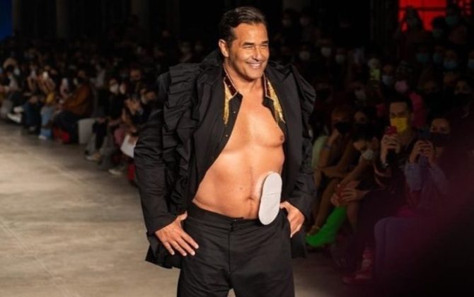 Então, Luciano transformou essa situação em uma oportunidade de promover a representatividade das pessoas ostomizadas, mostrando que não é algo para se ter vergonha. Ele fez isso desfilando com sua bolsa à mostra no São Paulo Fashion Week.