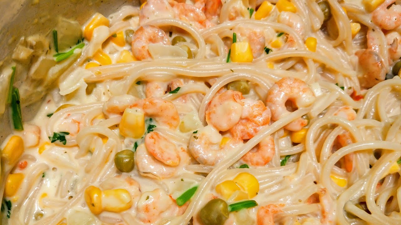 Para uma receita não tão básica nem tão sofisticada, essa macarronada é a melhor opção. Se gosta de acrescentar milho e ervilha em todas as receitas possíveis, essa é uma delas. Para preparar vai precisar do macarrão que mais gostar, milho e ervilha, camarões, cebola, creme de leite, amido de milho para engrossar, coentro, alho, sal e requeijão.