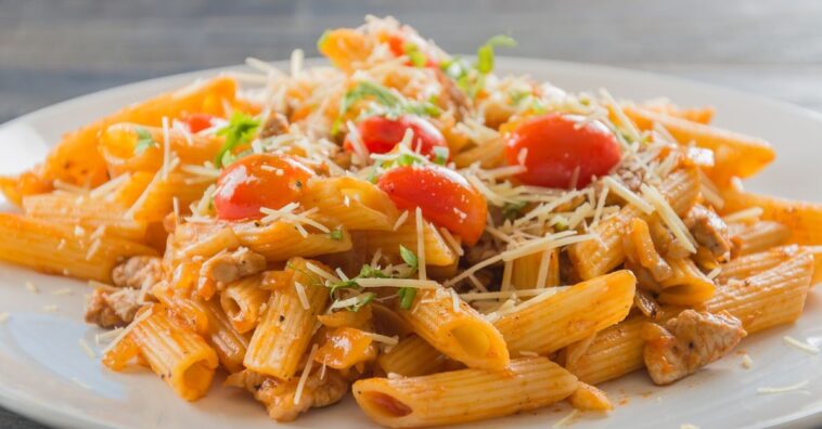 O macarrão de panela de pressão com frango é uma receita perfeita para fazer um almoço rápido. Ele fica bem cremoso e você pode ir adicionando ingredientes para deixar a receita mais colorida e cheia de sabor, conforme o seu gosto. Aprenda algumas versões bem fáceis e faça o teste na sua casa.