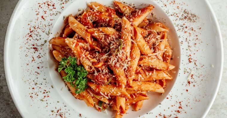 Aqui temos uma sugestão de sabor compartilhada do Receitas de Minuto. Mas, você pode usar os ingredientes que tiver aí na sua cozinha para temperar e fazer o seu molho. Quando o assunto é macarrão e o preparo é mais rápido por ser na panela de pressão, a variedade de sabores é imensa, só precisa adequar o tempo da pressão se for usar ingredientes mais demorados para cozinhar.