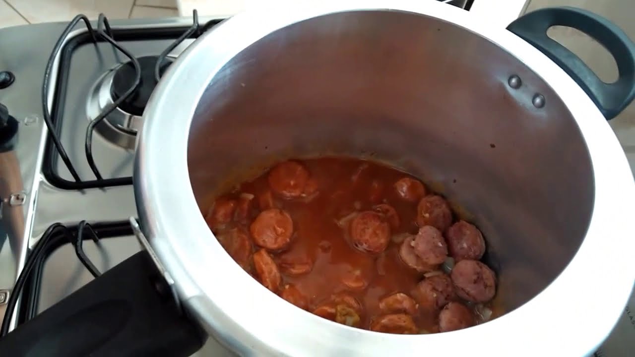- Misture todos os ingredientes na panela de pressão, tampe e leve ao fogo;