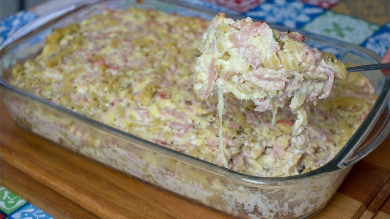Embora seja mais comum servir a macarronese geladinha, nada impede que você faça uma macarronada de forno com maionese. É bem simples também, pois leva só macarrão, maionese, presunto, creme de leite, muçarela, sal e orégano. Veja como fica: