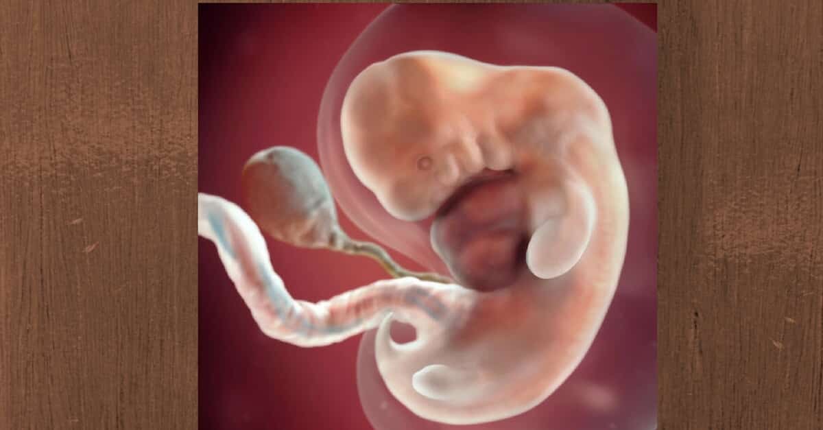 Ele ainda é somente embrião, mas já tem coração e cérebros mais complexos. O bebê ainda é muito pequeno, mas até sua pálpebras já estão em formação. Ele já tem nariz e bracinhos que podem se dobrar.
