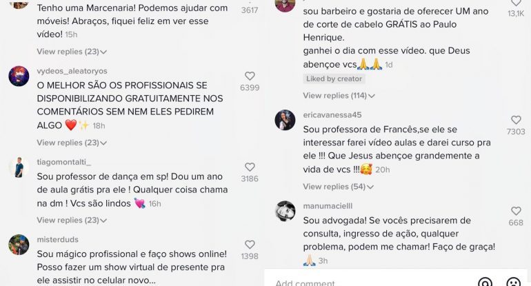 As pessoas que assistiram ao vídeo ficaram tão comovidas que a família recebeu diversas mensagens com oferta de serviços gratuitos de todos os tipos na intenção de ajudá-los a ter uma vida melhor.