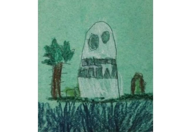 O desenho que ela tatuou é de uma criança mesmo, só que ela foi descobrir, mais tarde, que não tinha sido seu filho o autor da obra.