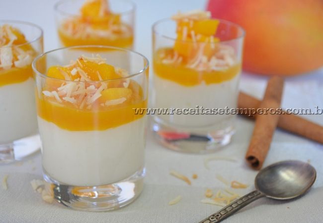 Bem tropical, essa receita de manjar branco é perfeita para servir em tardes de calor e sol. Tem uma aparência tão apetitosa quanto o aroma e o sabor. Com a receita clássica do creme, à base de leite de coco, leite condensado, leite integral, leite de coco e amido, o pudim ganha uma calda de manga com canela na cobertura que é incrível.