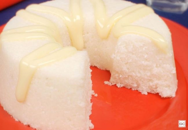 Esse manjar fica bem docinho e leva poucos ingredientes. O creme é feito com leite, açúcar, coco ralado e trigo ou amido de milho. Para a cobertura vai leite condensado e uma calda de caramelo.