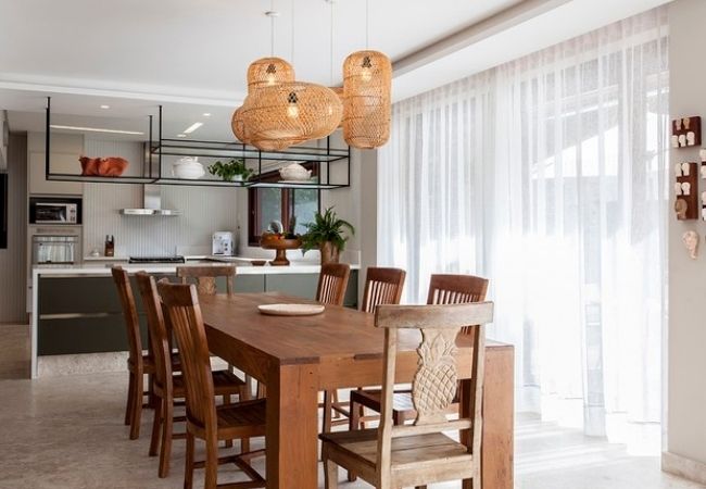 “A principal queixa deles era a cozinha muito fechada e quente, que não refletia a dinâmica da família de cozinhar e conversar, então começamos integrando este ambiente com a sala”, explicou Barbara, em uma entrevista para a revista Casa e Jardim. “Com a chegada das gêmeas, há cerca de 1 ano, todo o projeto foi ampliado para criar uma casa integrada, funcional e dinâmica”, conta.