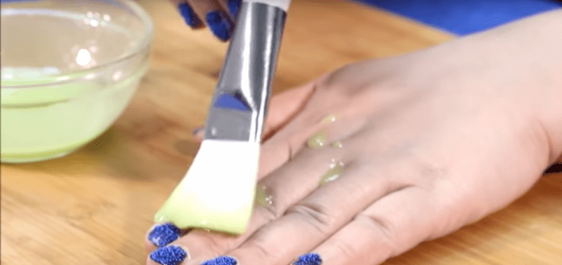 3. Utilize um pincel largo para “pintar” toda a mão com a mistura;