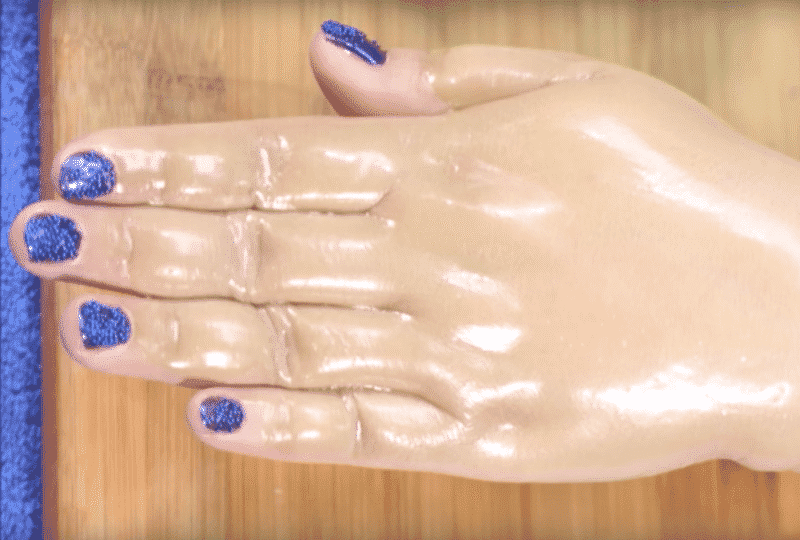4. Aguarde a mistura secar na sua mão e retire-a lentamente.