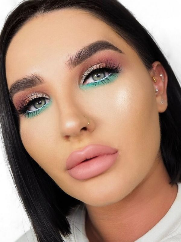 modelo maquiagem colorida verde e matte