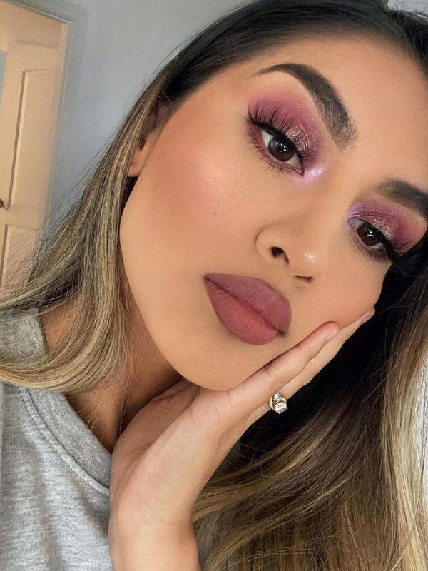 modelo maquiagem rosado degradê