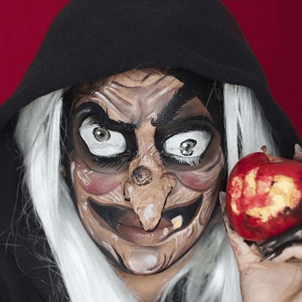 Será que é assim a verdadeira cara da Branca de Neve depois de comer a maçã envenenada? É uma ótima ideia trazer a delicada personagem dos contos de fadas para a festa de Dia das Bruxas com um visual temático.