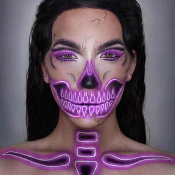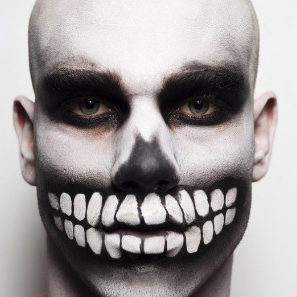 Para essa maquiagem de Halloween, você vai ter que ter mais paciência e não economizar na pintura. Mas se tiver jeito para make, com certeza vale a pena ir para a festa com essa fantasia.