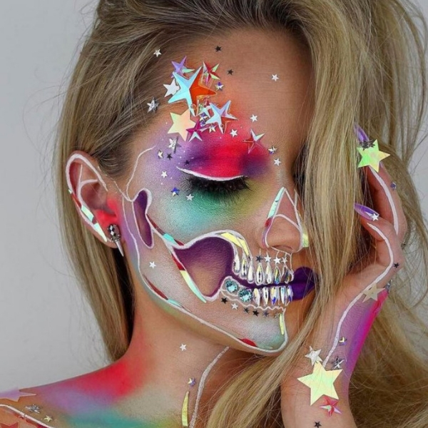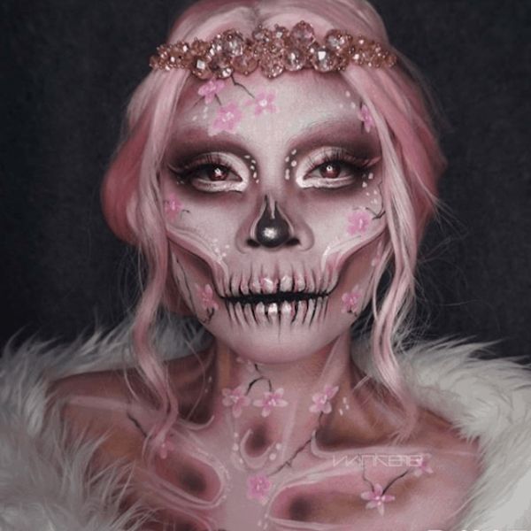 Nem toda caveira precisa ser assustadora. É claro que uma maquiagem de Dia das Bruxas tem tendência a assustar, mas se você quiser inovar, com certeza essa make vai chamar muito a atenção, é linda!