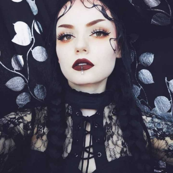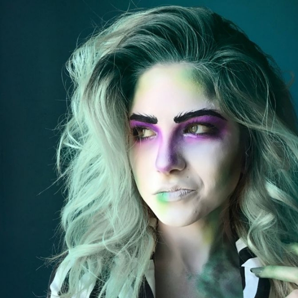 Nenhum Dia das Bruxas pode ficar sem uma bruxa. Para essa personagem, as maquiagens são bem variadas, então use esse modelo como inspiração. Capriche em um batom escuro, pele bem pálida e olhos marcantes.