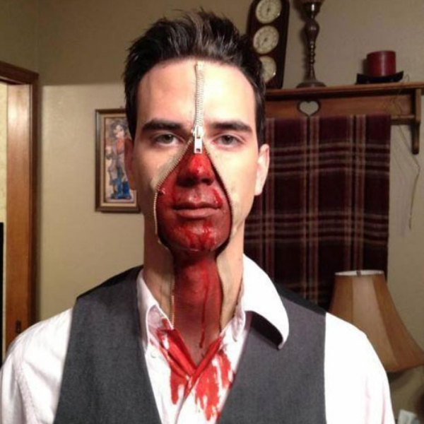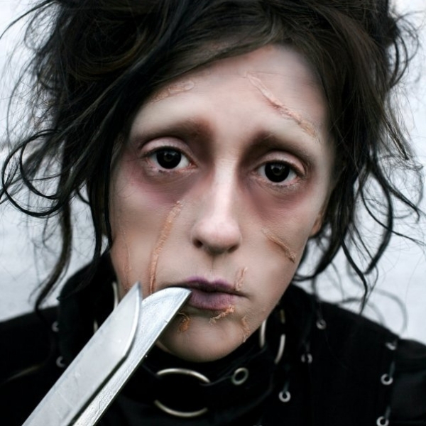 Esse é o querido personagem principal do filme “Edward Mãos de Tesoura”. Essa maquiagem ficou perfeita, então se escolher fazê-la, não esqueça de pintar as sobrancelhas e usar massa especial para as cicatrizes.