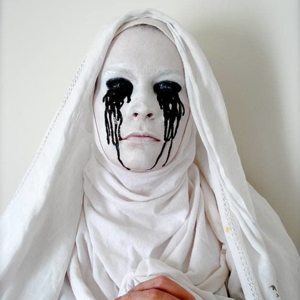 A freira pode ser uma opção tanto masculina quanto feminina, e é muito fácil de fazer. Essa ideia de caprichar nos olhos escorrendo o sangue preto é um efeito bem bacana e não dá muito trabalho.