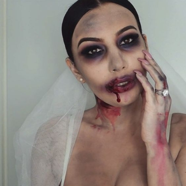 Vampiros também merecem espaço na festa de Halloween, sendo noivas ou não. Aliás, a make pode ser a mesma, independente da fantasia que quiser usar para esse personagem. Só precisa estar com cara de morto, olheiras fundas e aquele sangue básico típico de vampiro que acabou de fazer uma refeição.