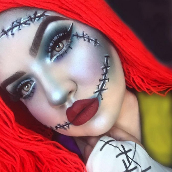 A personagem do filme “O Estranho Mundo de Jack” é uma fofura. Rosto azul e as linhas costuradas no rosto da boneca são as características da make que não podem faltar.