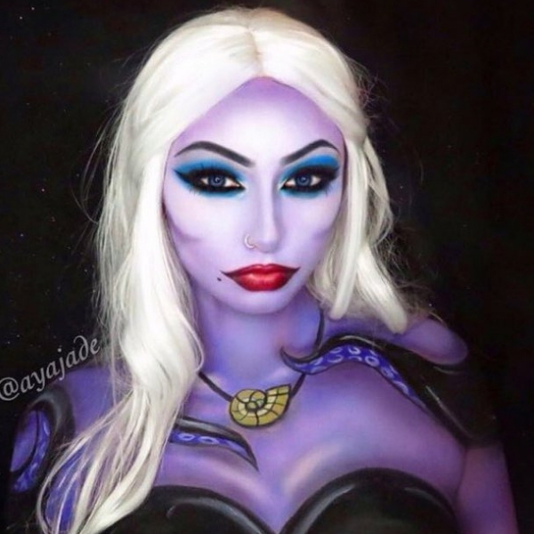 Essa é a personagem do filme “A Pequena Sereia”, que também é outra opção bem legal para make de Halloween, já que é a vilã. É a bruxa do mar, com pele azul ou roxa e make bem forte.