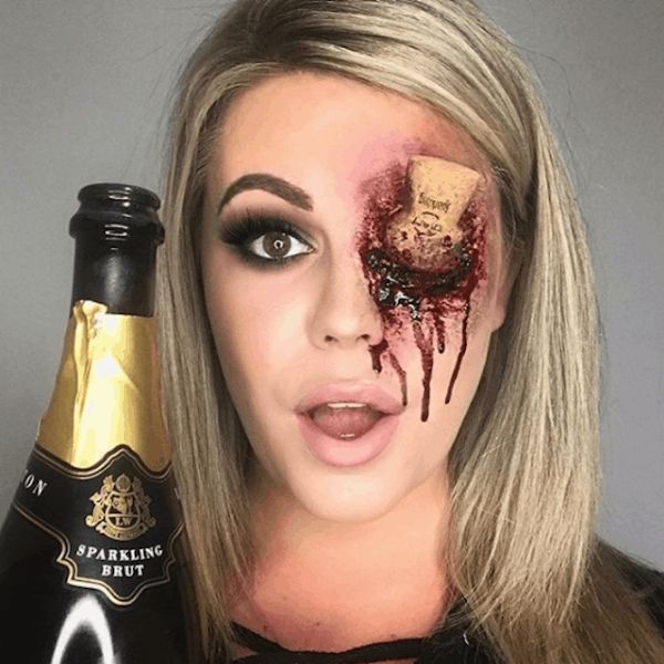 Essa make é bem filme de terror quando acontece um acidente básico e você acaba com a rolha do champanhe enterrada no olho com muito sangue.