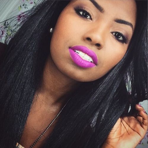 Como essa pele é mais clara, o batom é bem intenso e os olhos estão bem marcados, com certeza é uma make para usar à noite. Se quiser dar uma suavizada, um vestido claro é a melhor opção. Já se quiser chegar chegando, o preto é uma escolha poderosa.