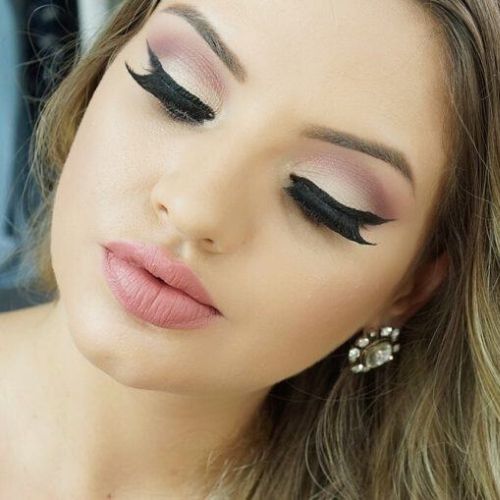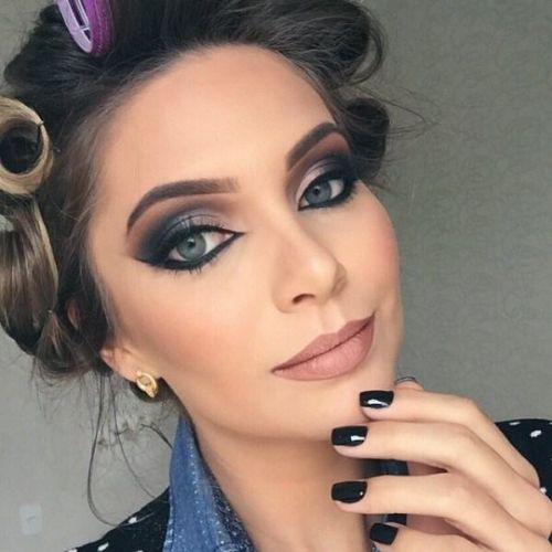 Olhos bem pretos, batom matte, um visual mais fosco com leve toque de brilho nos olhos. Essa é uma linda make noturna que pode ser usada com qualquer cor de vestido.