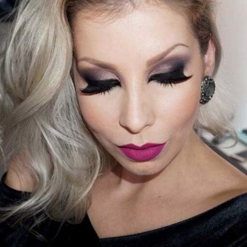 11. Maquiagem noturna com olhos pretos e batom roxo